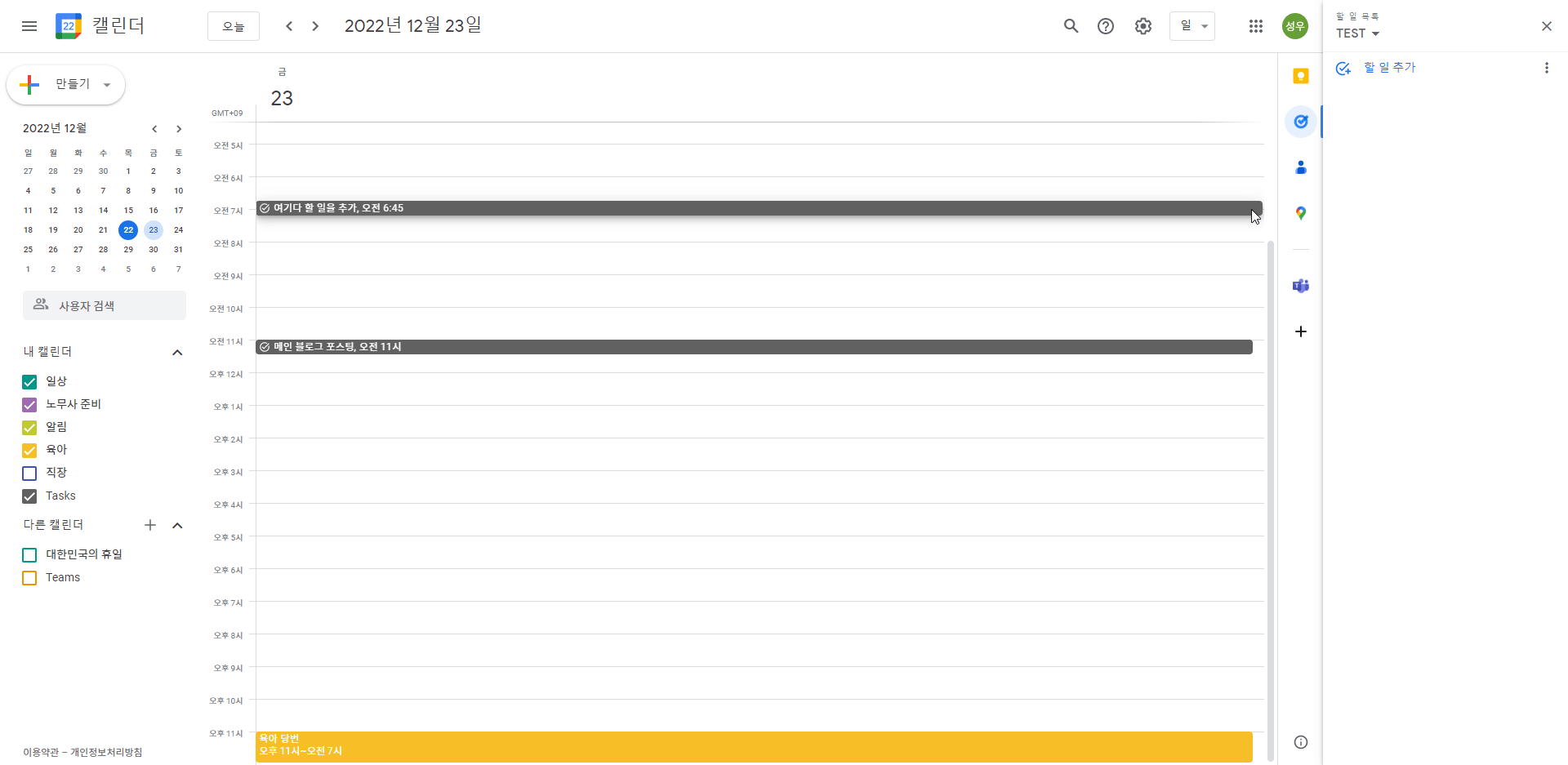 구글캘린더와 구글태스크 잘 사용해서 오늘도 칼퇴 노려보자.