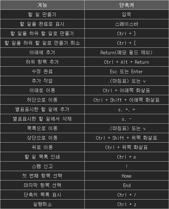 구글태스크 전체 단축키