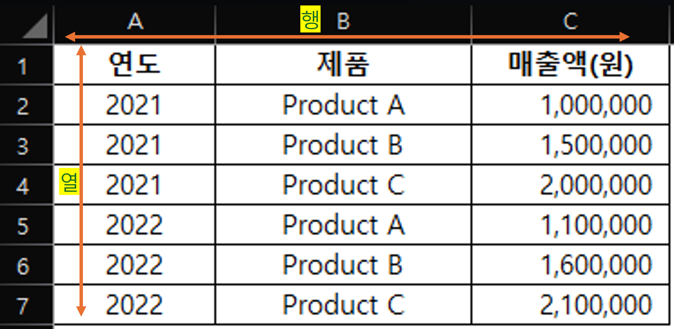 - 행(Row): 워크시트의 가로 줄을 의미하며, 숫자로 표시됩니다.