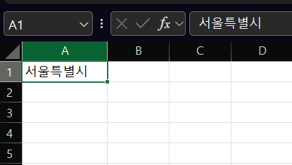 예: A1 셀에서울특별시→ 결과:5 - CONCATENATE 함수 (또는 CONCAT 함수): 여러 텍스트 문자열을 하나로 결합합니다.
