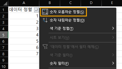 - 오름차순 정렬: 작은 값에서 큰 값으로, 또는 A에서 Z 순으로 데이터를 정렬합니다.