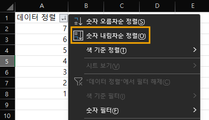 - 내림차순 정렬: 큰 값에서 작은 값으로, 또는 Z에서 A 순으로 데이터를 정렬합니다.