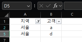 예를 들어, 고객 목록에서 "서울"에 거주하는 고객만을 필터링하고 싶다면, 해당 열의 드롭다운에서 "서울"을 선택하면 됩니다.