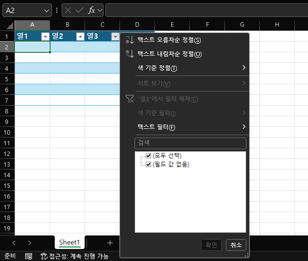 표를 만들면 다음과 같은 기본 기능들이 자동으로 활성화됩니다.