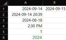 • 날짜와 시간 함께 입력: 날짜와 시간을 함께 입력하려면 "YYYY-MM-DD HH:MM" 형식을 사용합니다. 예를 들어, 2024년 8월 18일 오후 2시 30분을 입력하려면 "2024-08-18 14:30" 또는 "08/18/2024 2:30 PM"으로 입력합니다.